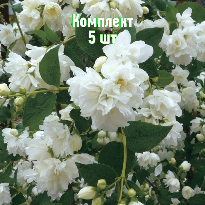 Чубушник (садовый жасмин) «Горностаева Мантия» — набор из 5 саженцев по выгодной цене: получите пять растений по цене четырёх. Питомник предлагает качественные, подготовленные к посадке кустики — отличный выбор для тех, кто хочет быстро и недорого преобразить участок.