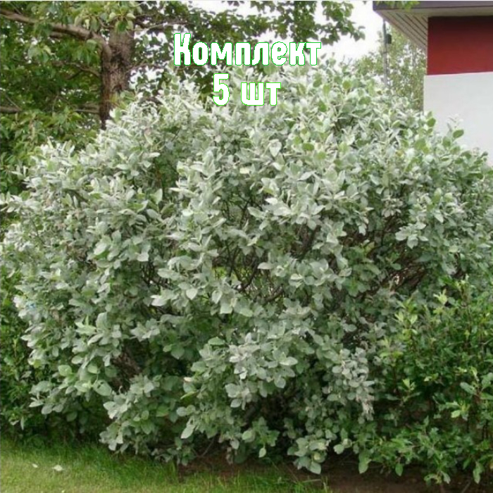 Ива Пепельная (Salix cinerea) — комплект из 5 саженцев, компактное и эффектное решение для озеленения. Кустарник высотой 3–5 м с округлой кроной до 3 м, тёмно-серой корой и удлинёнными листьями 4–12 см: сверху тёмно-зелёные, снизу — серо-войлочные. Растение цветёт весной, образуя заметные серёжки — ценится как медонос.