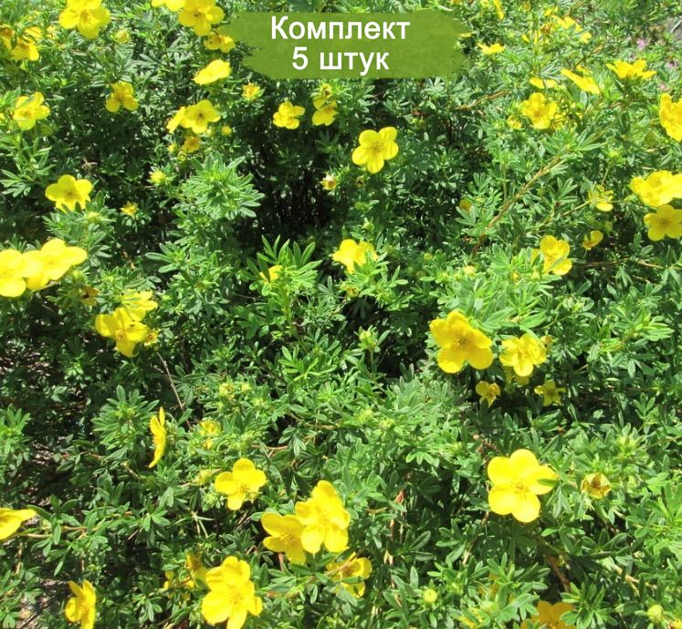 Лапчатка кустарниковая (курильский чай) сорта Кобольд — компактный, морозостойкий куст с обильным длительным цветением. Комплект из 5 саженцев подходит для живой изгороди, рокария или бордюра. Растение неприхотливо, отлично переносит стрижку и даёт плотный куст диаметром 30–60 см.